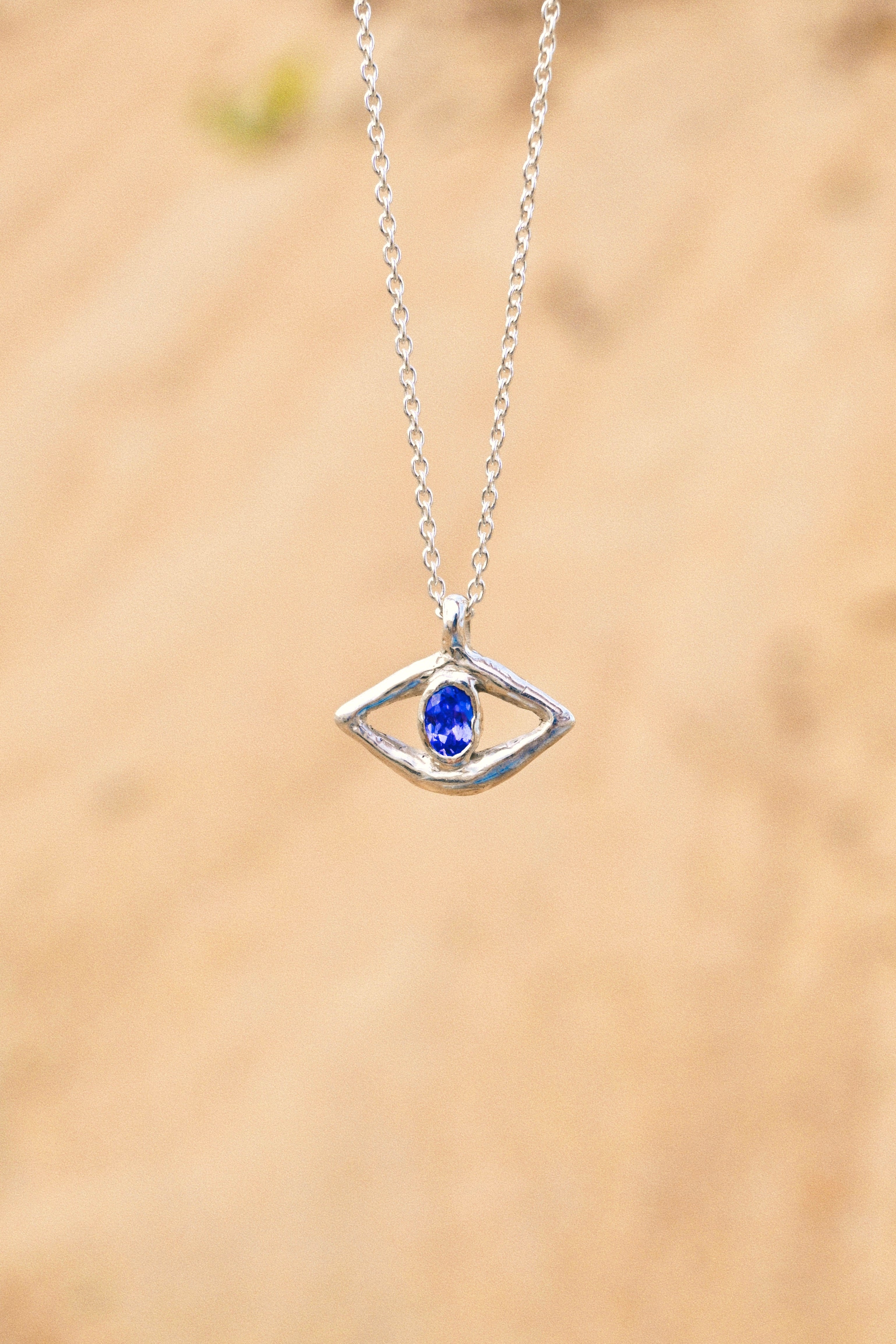 Ce collier Myst orné d'une magnifique Tanzanite aux reflets violets, représente un œil de protection qui vous apportera confiance et sécurité. Portez-la pour une touche de mystère et de protection au quotidien. Chaîne réglable en 45-50cm.