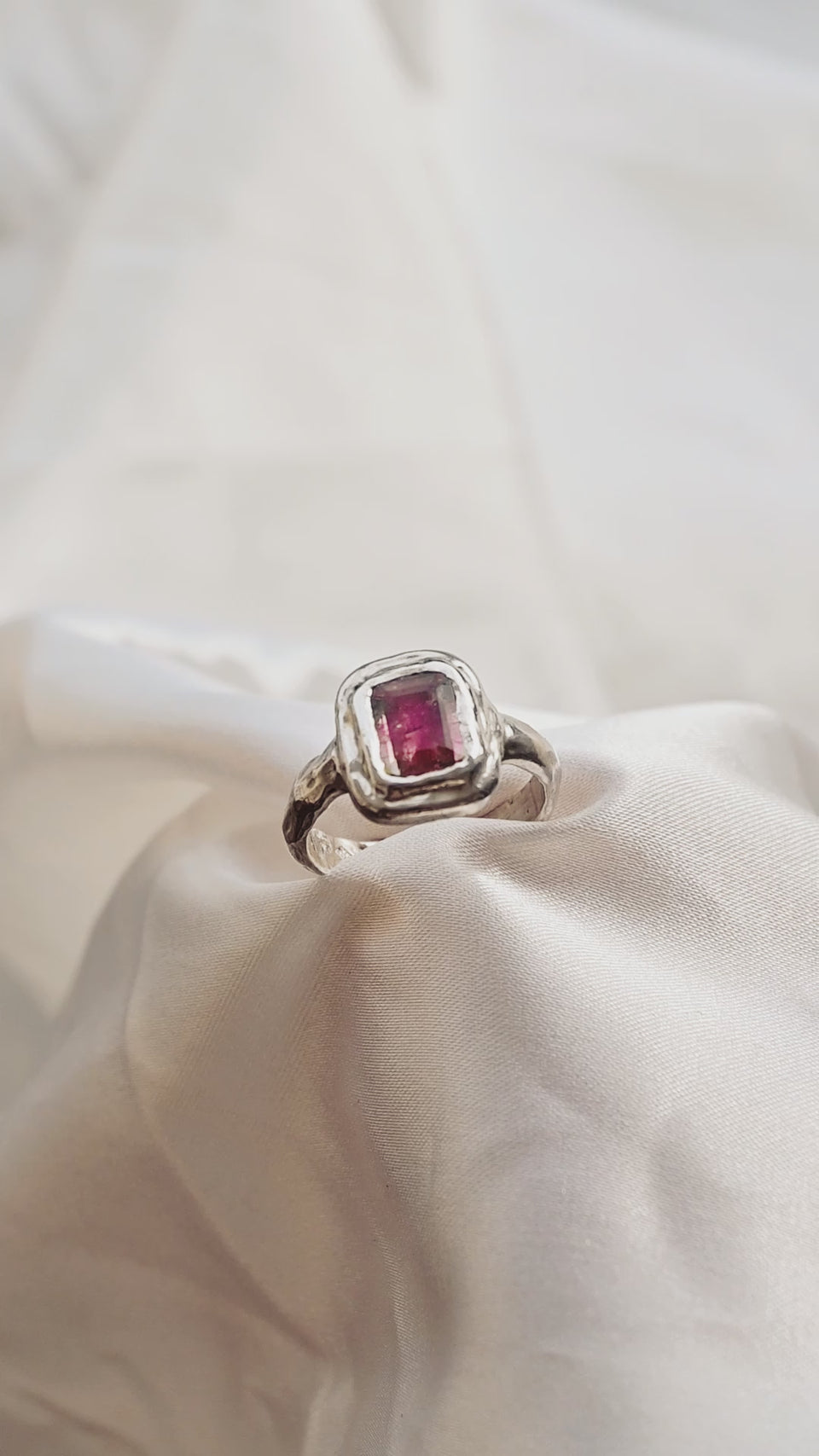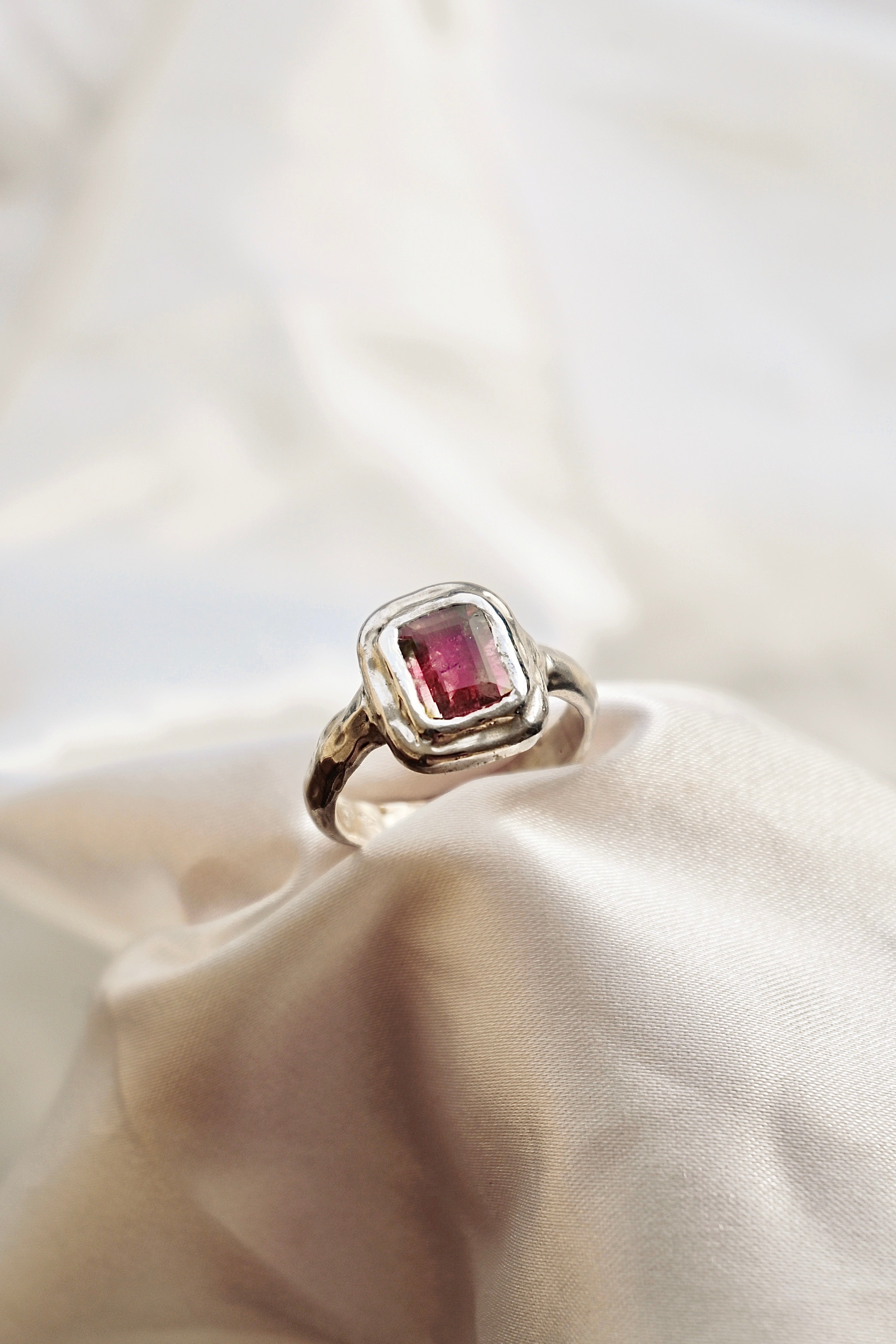 Cette merveilleuse bague Era en argent est sertie d’une superbe Tourmaline rosée/orangée translucide. Son aspect organique et texturé comme si elle avait été faite dans l’océan la rend totalement unique. Bague fait main avec amour et intention qui saura vous protéger.