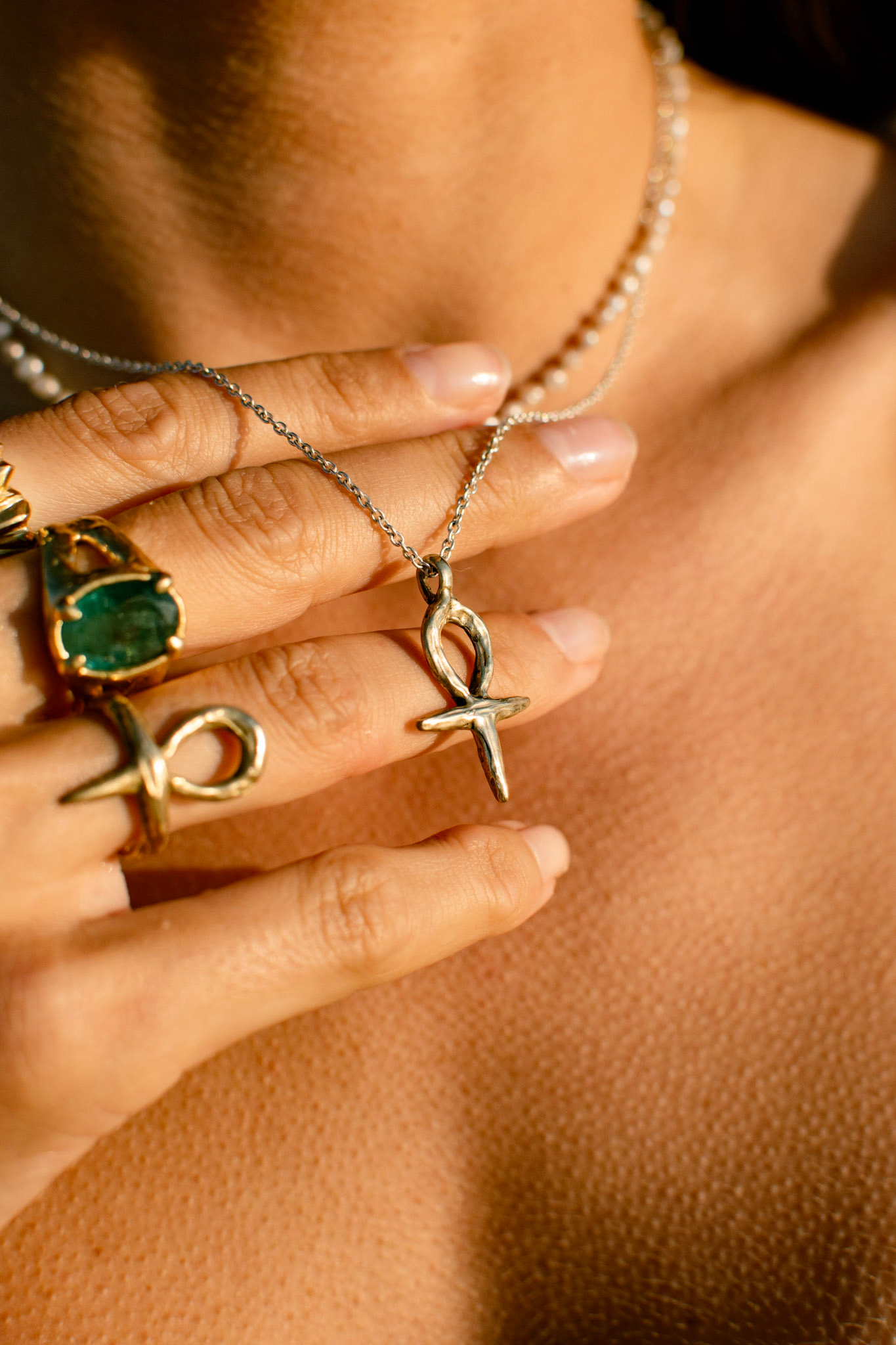 Talisman inspiré des mystères de l’Egypte, ce collier porte la croix Ankh : clé de la vie, souffle éternel. Symbole d’énergie vitale, renaissance et connexion sacrée. Collier unique fait à la main, dans un style brut et organique.